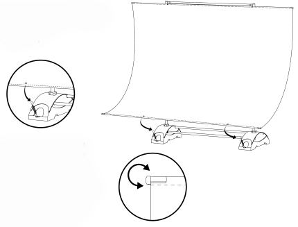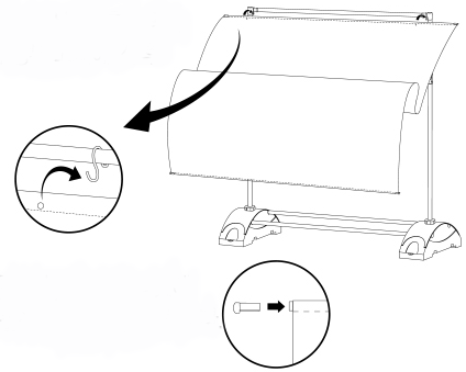 6. Connect lower supporting pipe with banner holding springs and trim the banner.