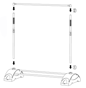 3. Push height adjusting poles to tank and connect top of the poles with arm.
